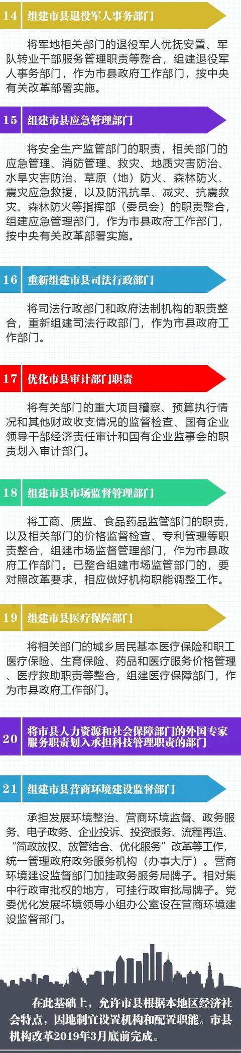 《总体意见》对统筹推进人大和政协机构改革、群团组织改革、党委政府直属事业单位和承担行政职能事业单位改革、综合行政执法改革、审批服务便民化改革等均提出了指导意见和改革方向。